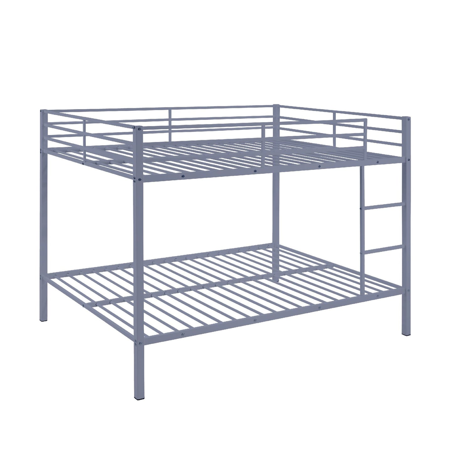Full Over Full Bunk Bed, Heavy Duty Metal Bunk Bed Frame with Built-in Ladder and Safety Guard Rail, Low Metal Bunk Bed Frame for Kids, No Boxspring Required, For Small Spaces, Gray