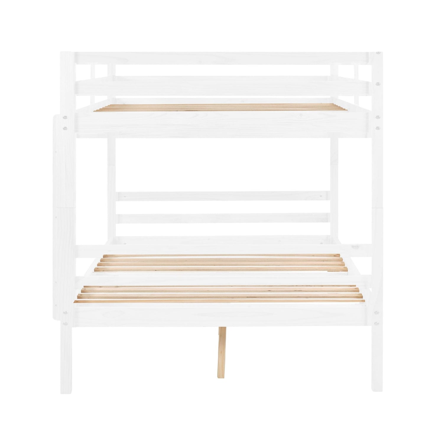 Full over Full Bunk Bed with Ladder, Wooden Bunk Bed with High Guardrail and Ladder for Kids, Teens, Dorm Rooms, and Guest Rooms, No Box Spring Needed, White