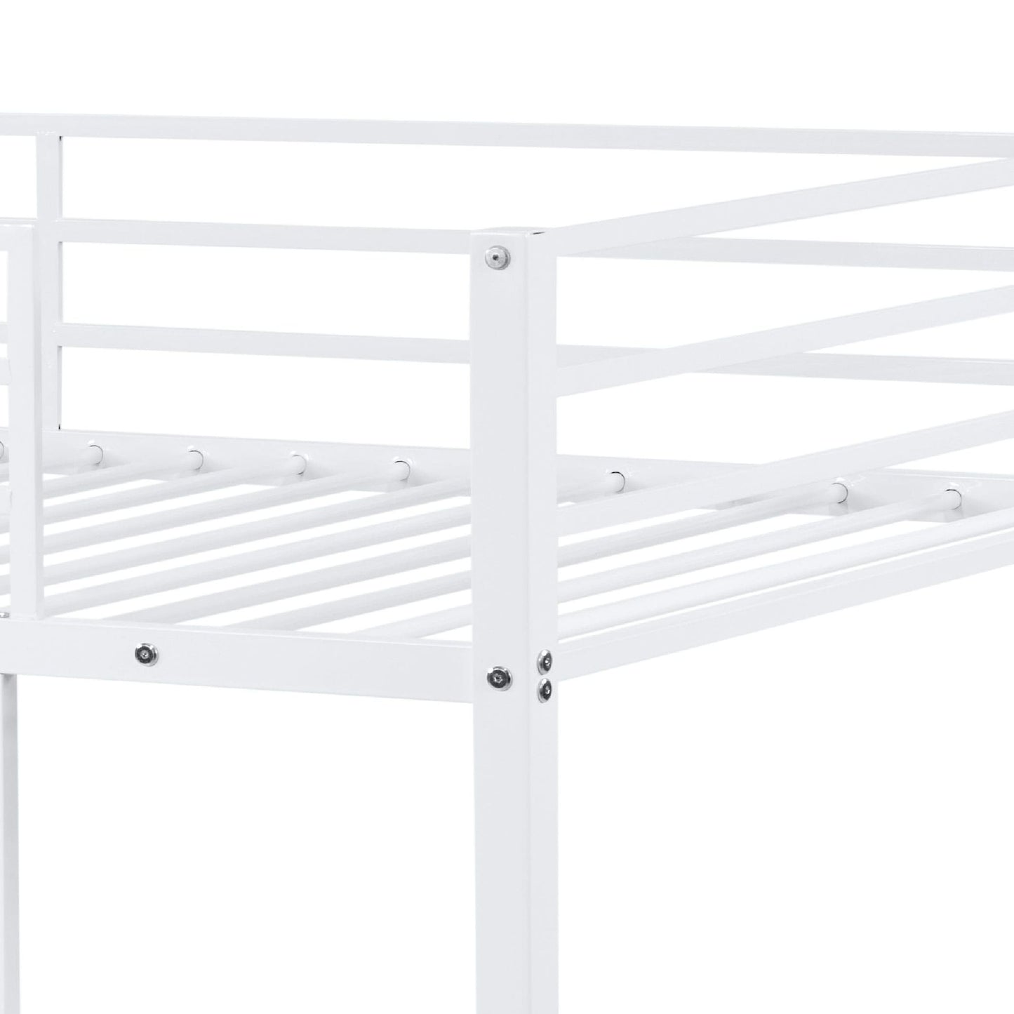 Metal Bunk Bed Twin Over Twin, Low Profile Bunk Bed Frame withBuilt-in Ladder, High Guardrail and Metal Slats, Space-Saving Twin Size Bed Frame for Kids Teens, No Box Spring Required, White