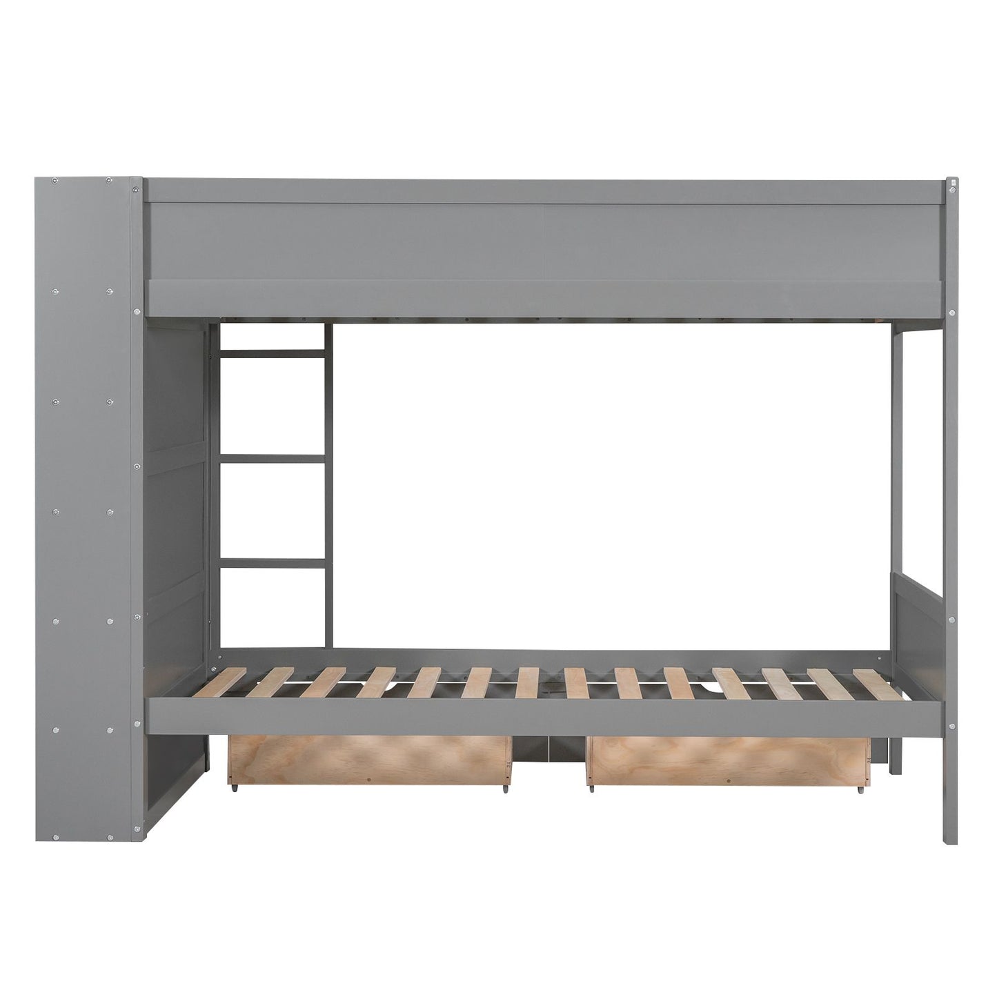 Twin over Twin Bunk Bed With 2 Drawers and Multi-layer Cabinet, Gray