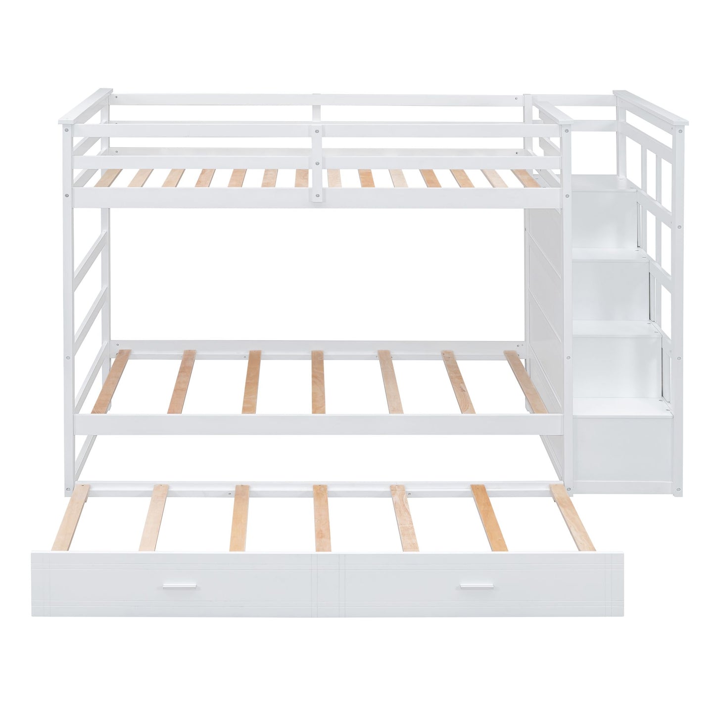 Twin Over Twin Bunk Bed with Trundle and Staircase, White