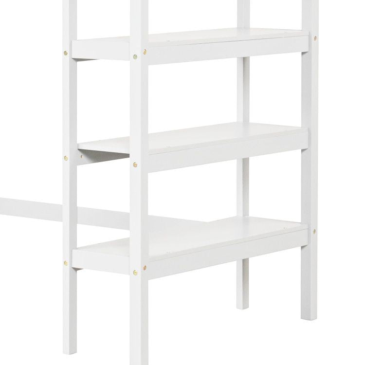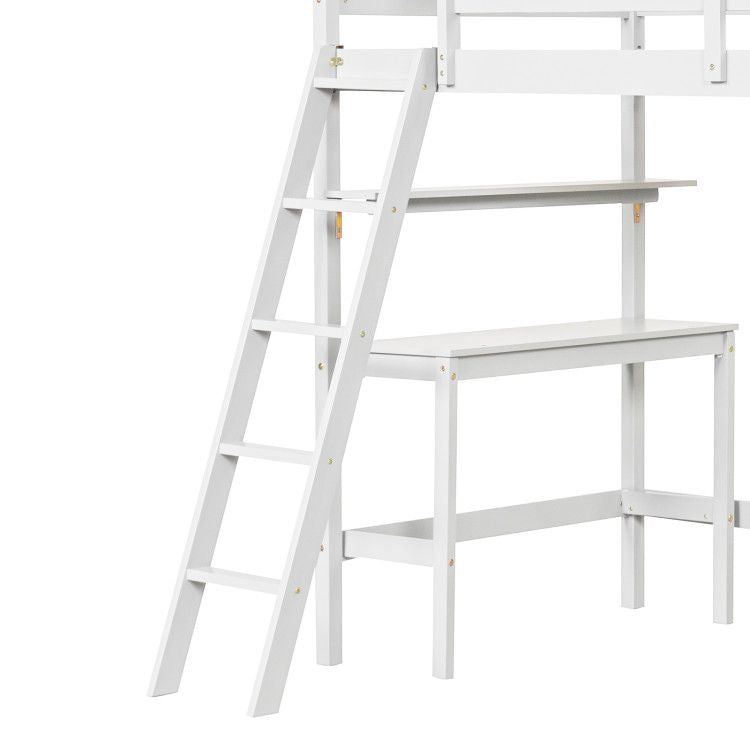 Twin Size Loft Bed with Desk and Bookshelves for Kids and Teens