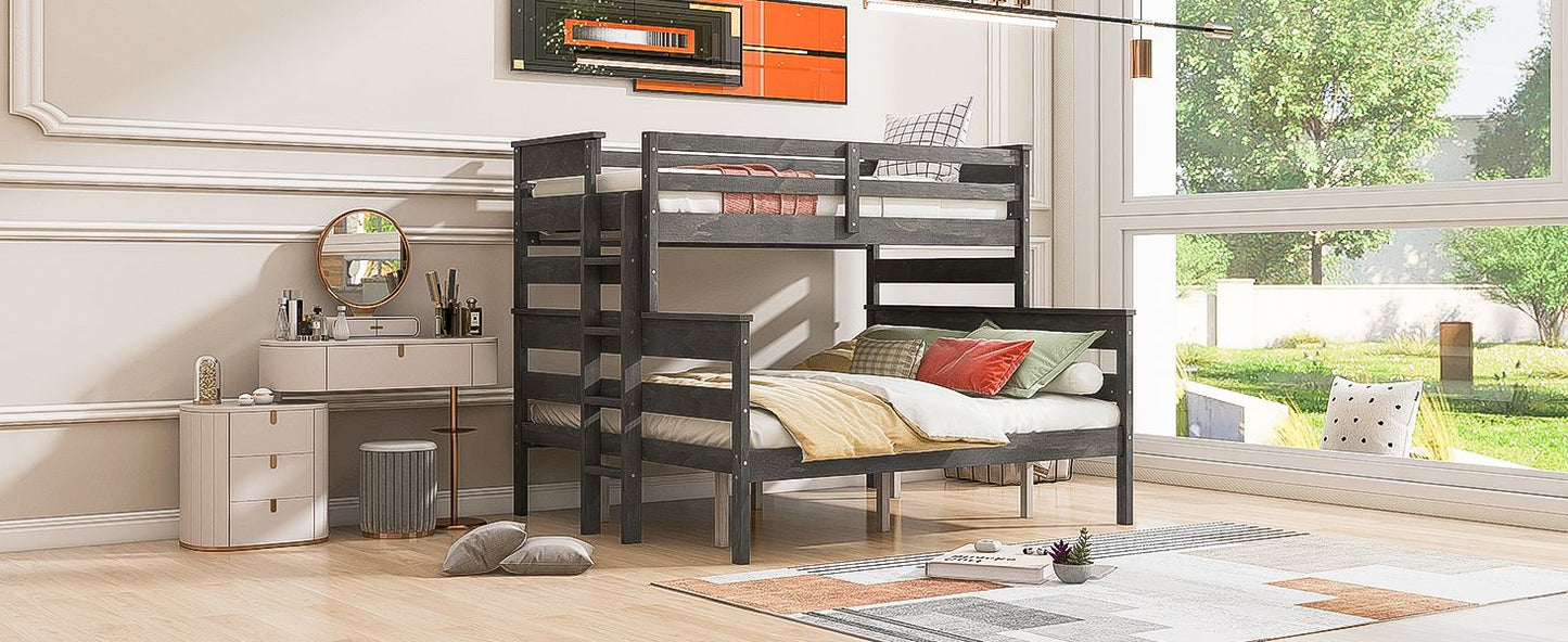 Wood Twin XL over Queen Bunk Bed with Ladder, Gray